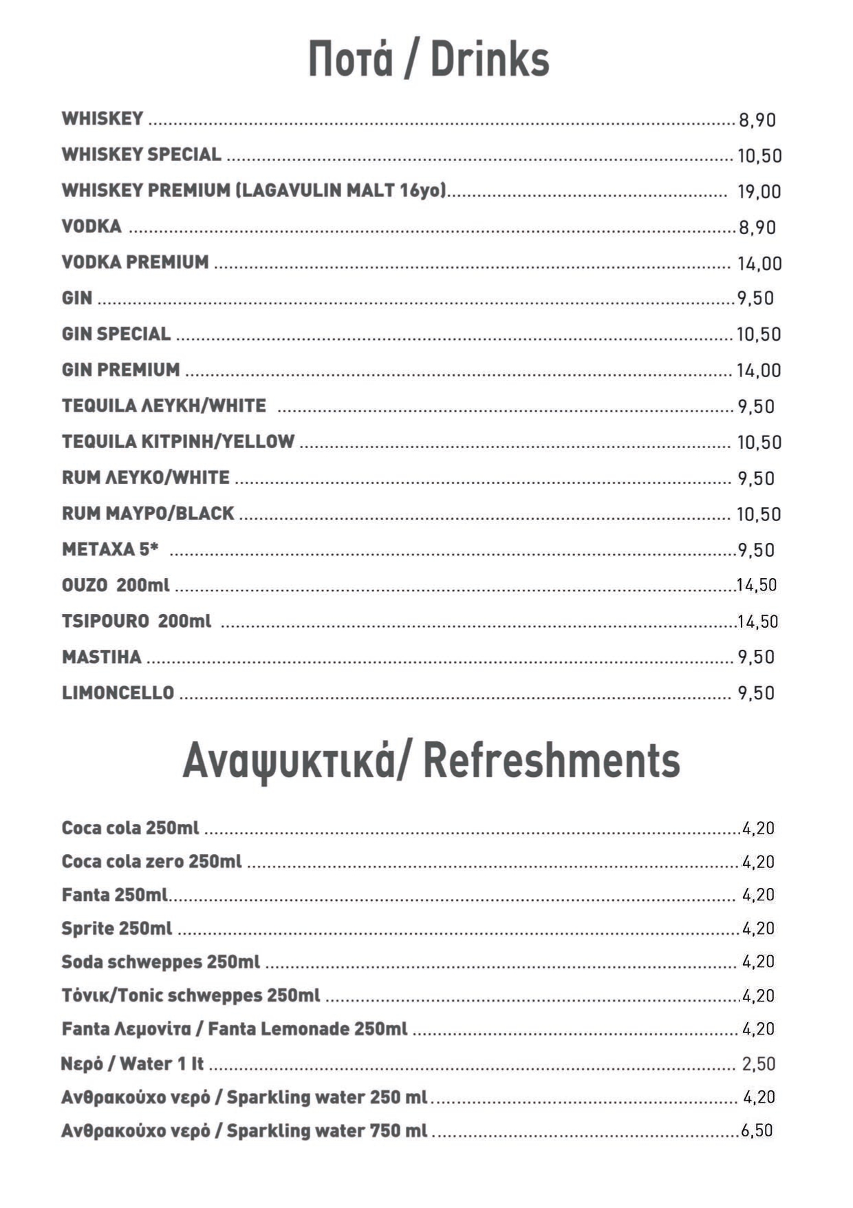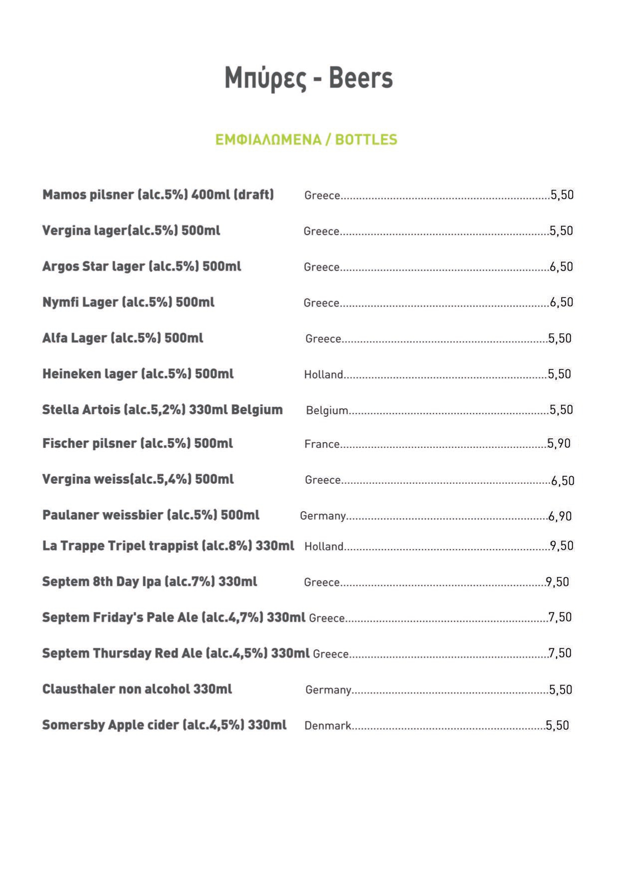 Μπορείτε να απολαύσετε από το πρωί, τον καφέ μαζί με τον πρωινό σας και από το μεσημέρι έως αργά το βράδυ, να γευτείτε τα υπέροχα πιάτα, την μεγάλη ποικιλία σε μπύρες, όλων των ειδών (Lagers, Pilsner, Ale. Weiss, Red, Monastery, Black, με φρούτα και χωρίς αλκοολ, επίσης και σε Draught) καθώς και τα επιλεγμένα ελληνικά κρασιά μας.