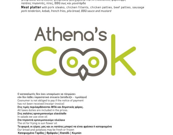 Στο Athena’s Cook θα δοκιμάσετε νόστιμα πιάτα με μεσογειακές επιρροές αλλά και παραδοσιακά ελληνικά εδέσματα, μαγειρεμένα με τις καλύτερες πρώτες ύλες στον όμορφο και φιλόξενο χώρο, στο κέντρο της Αθήνας.